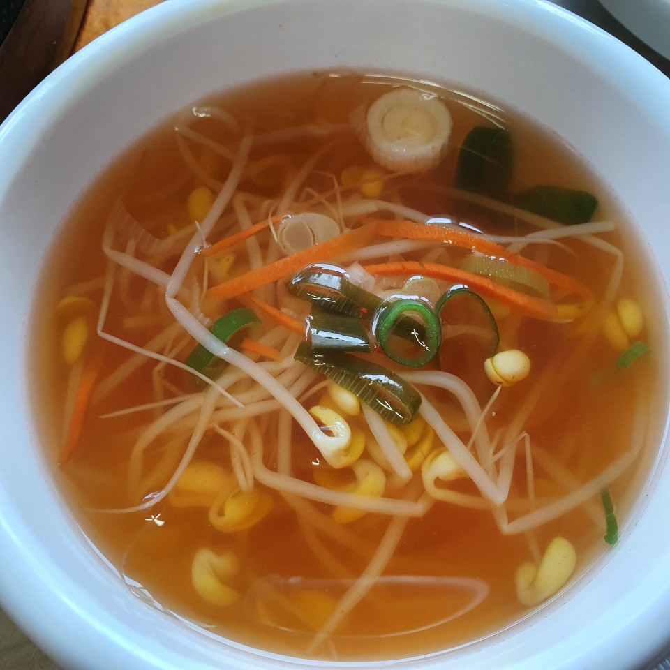 양파슬라이스 초절임과 콩나물 국입니다. 이집의 콩나물국은 따로 비법이 있는지 너무너무 맛이 좋습니다. 원래 콩나물국을 좋아하지 않는데 이 집에서는 구수하고 시원한 맛이 좋아서 국물 한 그릇을 다 비우게 됩니다.